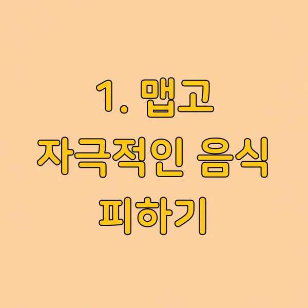 매운 음식 대신, 순한 양념 을 사용한 요리를 선택하는 것이 좋습니다. 예를 들어, 맑은 탕이나 담백한 찜 요리가 좋은 대안이 될 수 있어요. 음식의 맛을 살리기 위해 향신료를 과도하게 사용하는 것도 피하는 것이 좋답니다.