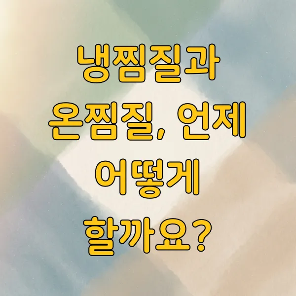 하지만 찜질 방법을 잘 모르겠거나 통증이 지속된다면 전문가와 상담하는 것이 가장 안전합니다. 잘못된 찜질은 오히려 상태를 악화시킬 수 있기 때문입니다.