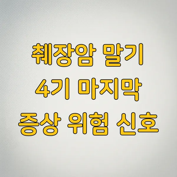 췌장암 말기, 즉 4기 진단을 받은 환자에게 나타날 수 있는 마지막 증상과 위험 신호를 미리 파악하는 것은 매우 중요합니다. 암이 전신으로 퍼져 나간 상태이기에, 몸에서 보내는 신호들을 잘 알아차리는 것이 환자의 편안한 여정을 돕는 길입니다. 이 글에서는 췌장암 말기 환자에게 나타날 수 있는 다양한 증상들을 살펴보고, 가족이나 간병인이 주의 깊게 살펴야 할 위험 신호들을 알려드리겠습니다. 이를 통해 환자분과 보호자분들이 조금이나마 더 나은 상황을 맞이할 수 있기를 바랍니다.